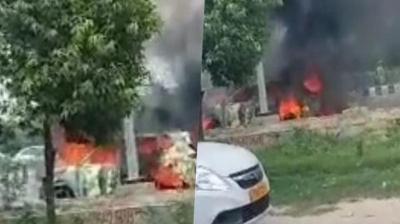 नोएडा सेक्टर-63: मारुति सर्विस सेंटर में भीषण आग, 7-8 गाड़ियां खाक