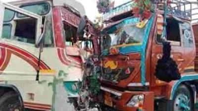 तेज रफ्तार ट्रक का कहर, निजी बस से भिड़ंत में 13 घायल