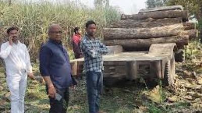 छत्तीसगढ़ राज्य वन विकास निगम की कार्रवाई, लकड़ी से भरा ट्रैक्टर पकड़ा