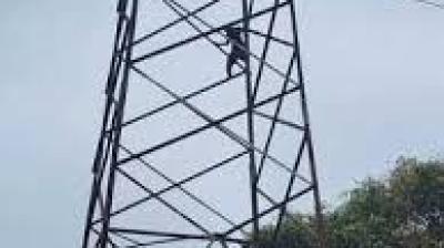 हाई टेंशन टावर पर चढ़े युवक को सुरक्षित उतारा गया