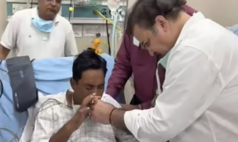 जयपुर: राजस्थान के झालावाड़ में हुए स्कूल हादसे को लेकर अनशन के चलते नरेश मीणा की तबीयत लगातार बिगड़ती जा रही थी। इसको लेकर पुलिस ने उन्हें अनशन स्थल से उठाकर एसएमएस हॉस्पिटल में भर्ती कराया। इस दौरान नरेश को आईसीयू में एडमिट किया गया। इधर, पूर्व मंत्री प्रताप सिंह खाचरिवास अस्पताल पहुंचे, जहां उन्होंने नरेश से समझाइश कर उन्हें पानी पिलाकर उनका अनशन तुड़वाया। इधर, खाचरियावास सरकार पर जमकर बरसे। उन्होंने सरकार पर जमकर सियासी बाण छोड़े।