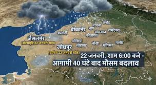 मौसम विज्ञान केंद्र जयपुर के अनुसार 22 जनवरी को पश्चिमी राजस्थान के कुछ हिस्सों और पूर्वी राजस्थान के सीमावर्ती जिलों में आंधी-बारिश की गतिविधियां देखने को मिल सकती हैं। इसके बाद 23 जनवरी को सिस्टम और मजबूत होगा, जिससे करीब 10 जिलों में मौसम का असर पड़ने की संभावना है। कुछ स्थानों पर तेज हवाओं के साथ बारिश और ओले गिर सकते हैं, जिससे फसलों को नुकसान की आशंका भी जताई जा रही है।