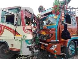 तेज रफ्तार ट्रक का कहर, निजी बस से भिड़ंत में 13 घायल