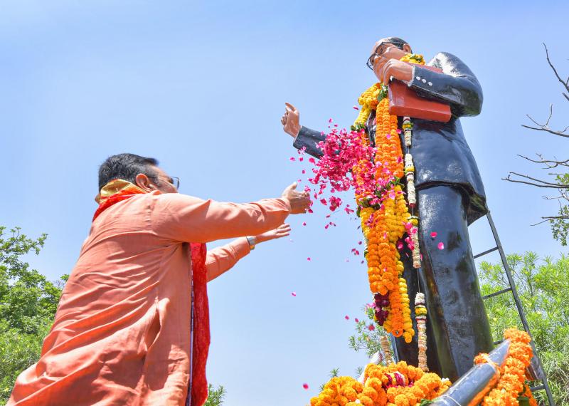 मुख्यमंत्री भजनलाल शर्मा ने संविधान निर्माता डॉ. भीमराव अंबेडकर की प्रतिमा पर पुष्पांजलि अर्पित की