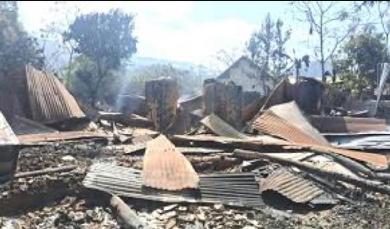 सोमवार को टामटिया गांव का दृश्य भयावह था। रविवार रात हुई हिंसा के बाद कई घरों से दोपहर तक धुआं उठता दिखाई दिया।