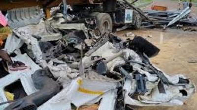 पुलिया से टकराया ट्रेलर, पाइप गिरने से दो घायल गंभीर